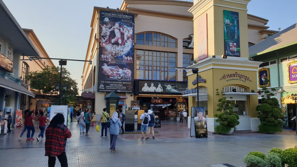 Gegen 16:30 Uhr haben wir uns auzf dem Weg zum Nachtmarkt gemnacht. Diester öffnet um 16 Uhr und schließt um 0 Uhr. In Bangkok ist es bereits um 18 Uhr dunkel, so dass der Markt die meiste Zeit im Dunkeln geöffnet ist. Mit den öffentlichen Verkehrsmittel braucht man zum Markt ca 45 Minuten. Da es Sonntag war und der Verkehr dadurch nicht ganz so extrem haben wir uns dazu entschieden ein TukTuk-Taxi zu nehmen. Mit diesem sind wir ca 15 Minuten zum Markt unterwegs gewesen.