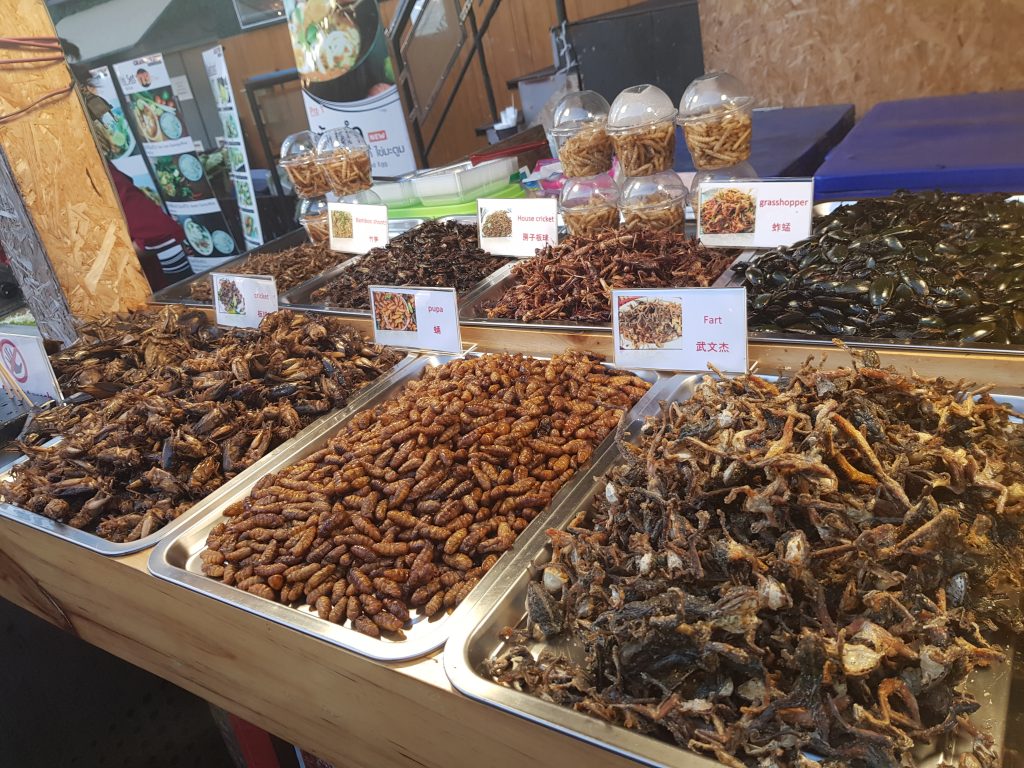 Auf dem Markt haben wir uns neue Sonnenbrillen gekauft und das erste wirkliche Ziel des Urlaubs abgehakt. Wir haben Insekten gegessen. Wir haben es uns nicht nehmen lassen und Kakerlake, Wespe, Fliege, Heuschrecke und Würmer gegessen. Die frittierten Frösche und den Skorpion am Spieß haben wir erst einmal außen vorgelassen. Man muss sich ja langsam rantasten.