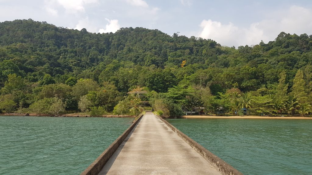 Bis zum nächsten Stopp dauerte es schon etwas länger. Bereits auf der anderen Seite der Insel hielten wir a, Tarnmayom Pier, der etwa 200m ins Meer ragte. Diesen sind wir zu Fuß entlanggegangen und hatten hinterher eine sehr schöne Sicht auf die Insel. Leider war das Wetter etwas diesig, so dass wir das Festland gegenüber leider nur sehr schemenhaft erahnen konnten.