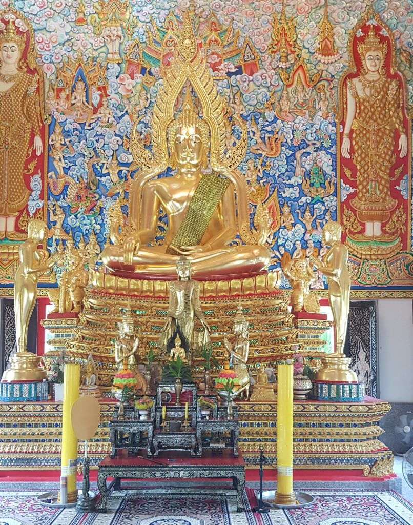 Der nächste Halt war am Salak Phet Pier, den man entlanggehen konnte und von einem anderen Blickwinkel auf die Insel schauen konnte. Im Vergleich zum ersten Pier empfand ich die Aussicht weniger beeindruckend. Trotzdem ist es schön, wenn man sie geboten bekommt. Anschließend ging es zum Wat Salak Petch, einem Tempel, dessen Bauzeit 17 Jahre betrug und 14 Million Baht (ca 390.000€) gekostet hat. Der Tempel war für mich wesentlich interessanter als der chienisische zum Anfang der Tour, da hier auch die Beschreibungen der Figuren auf Englisch vorhanden war, so dass man sich hier mit dem Thema auch besser auseinandersetzen konnte.