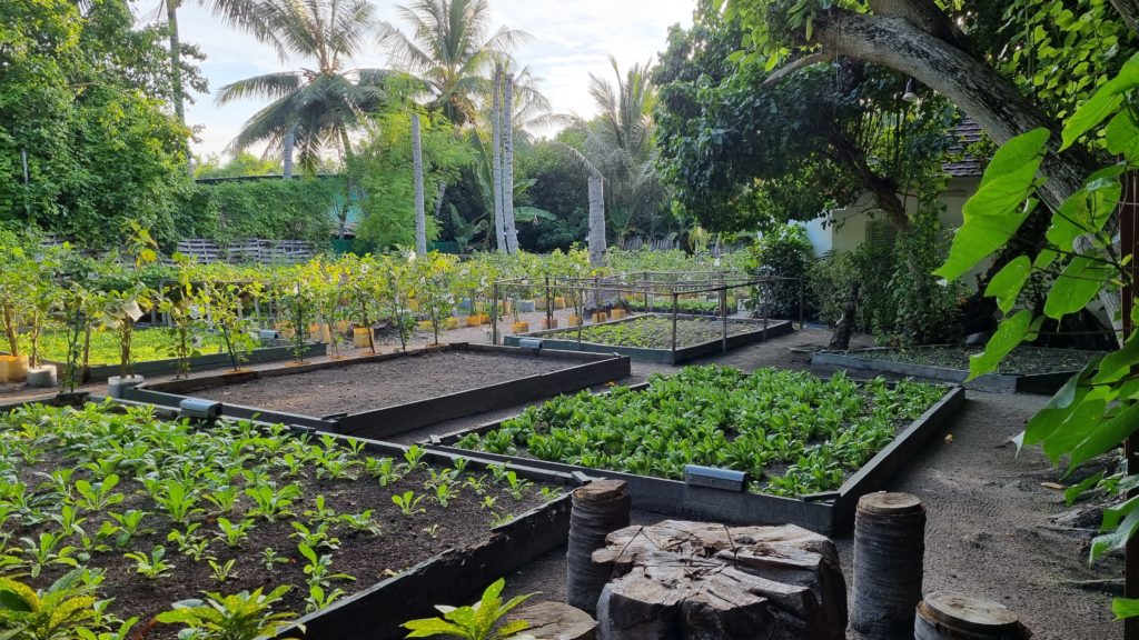 Hervorzuheben ist hier der eigene Inselgarten, in dem ausschließlich Nutzpflanzen, wie Aubergine, Pak Choi, Radieschen und Spinat, gezüchtet werden. Der Ertrag wird im Hotel beispielsweise bei der Zubereitung der Speisen verarbeitet. Frischer bekommt man sein Essen sicher nicht.