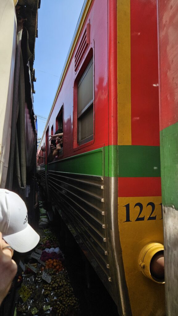 Nachdem der erste Tag mit vielen Metern zu Fuß und unter Umständen mit Katererscheinen am Folgetag enden sollte, haben wir uns für den zweiten Teil etwas gemütlicheres ausgesucht. Zuerst soll es mit dem Auto zum Maeklong Trainmarktet gehen. Am Nachmittag steht einer neuer Versuch zum Golden Mount Tempel in Bangkok an.