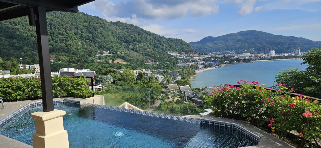 Mit einem tollen Blick auf den Patong Beach konnten wir unsere Unterkunft beziehen. Es ging auch direkt erst einmal zur Abkühlung mit Pils in den Pool.